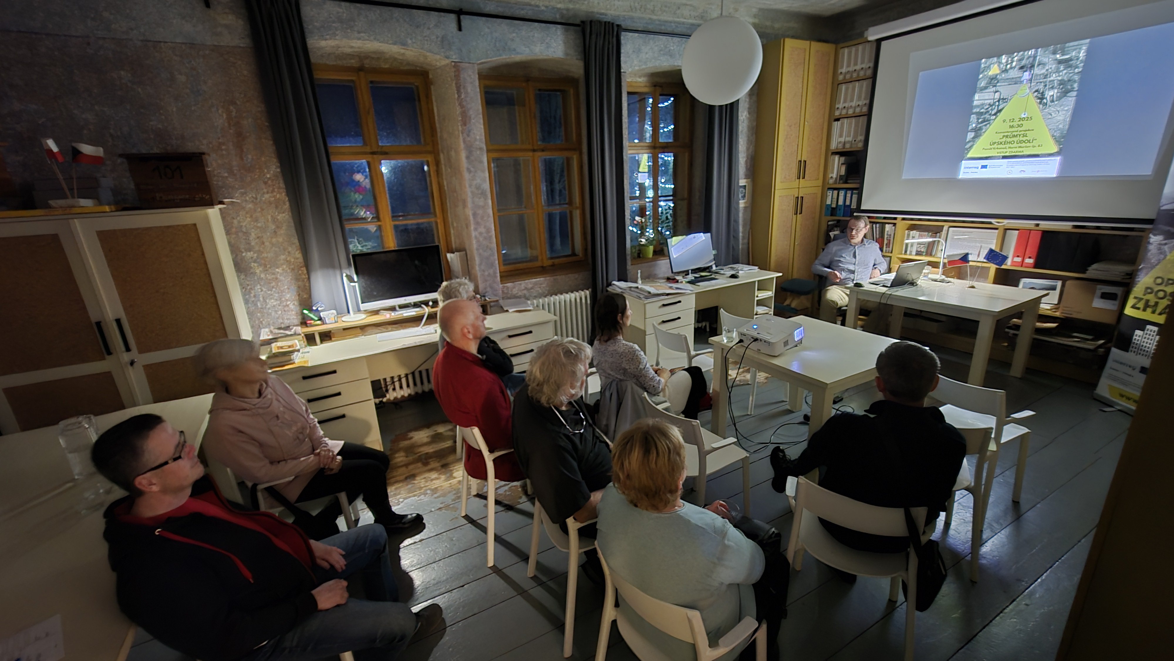 V úterý 9. prosince jsme se sešli v badatelně Paměti Krkonoš se zájemci o historii průmyslu úpského údolí. Historik Jan Ivanov ve zkratce shrnul dějiny průmyslu od poloviny 19. století, kdy nastal jeho prudký rozvoj, až po konec 2. světové války, kdy se poměry v celé zemi a tím i v tomto odvětví zcela proměnily. Zaměřil se potom zejména na druhou polovinu 20. století, kdy průmyslové závody zažívaly postupný úpadek a v současnosti funguje už jen pouhý zlomek z původních desítek provozů.